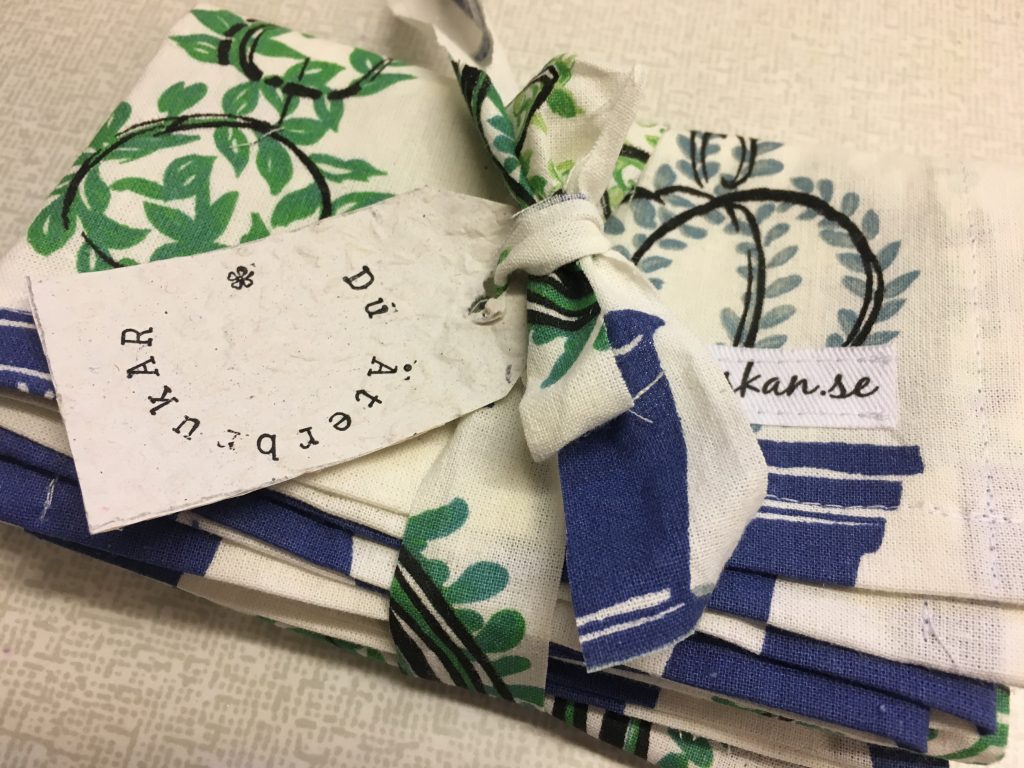 Alla dagar är det inte så avancerad sömnad. Upptäckte att mina kökshanddukar hade gjort sitt. Varför inte sy några nya? Så enkelt och ganska tillfredställande, när man liksom blir klar med något direkt utan en massa krångel. Så det blev ett par till som nu finns i webbutiken.
