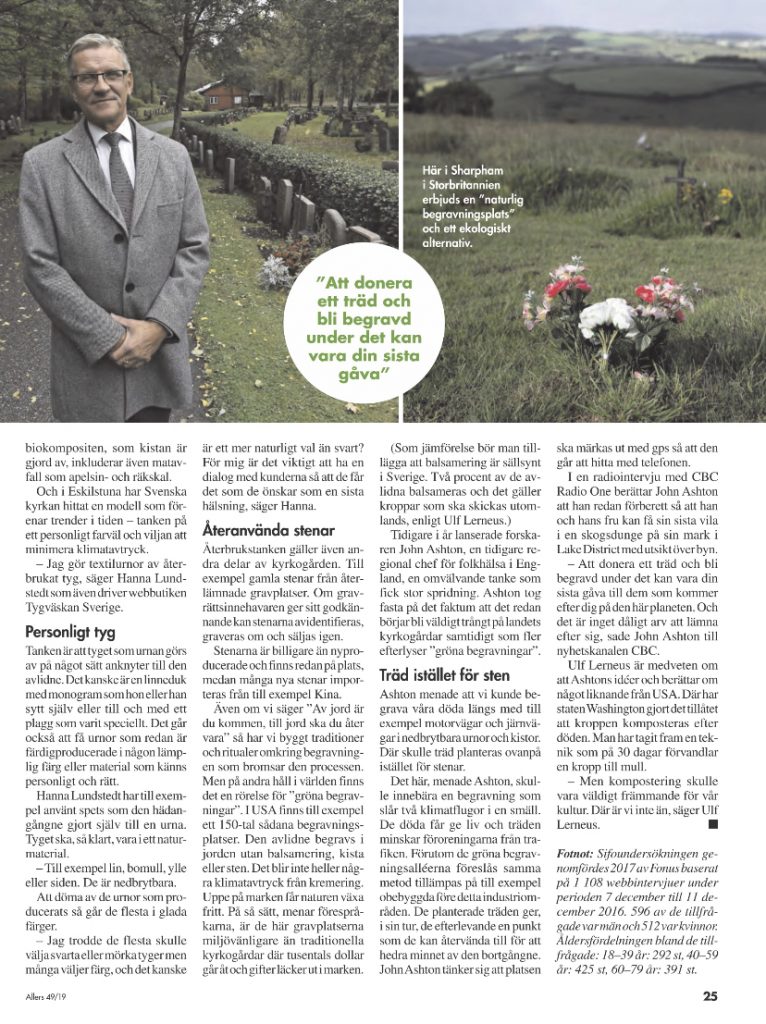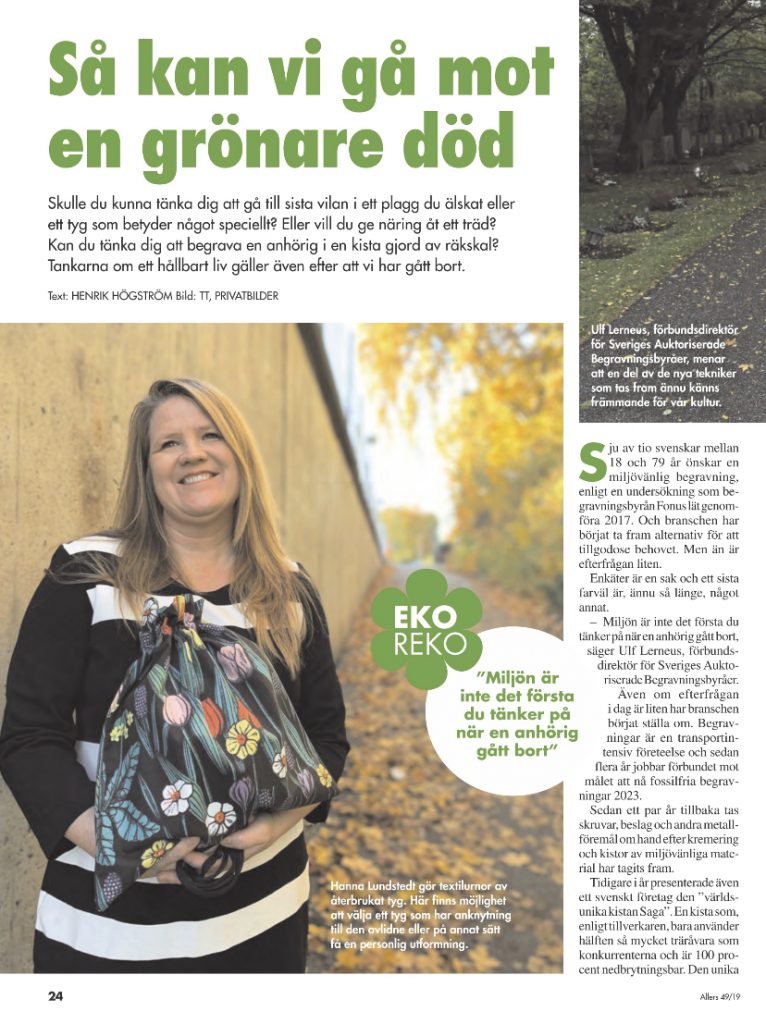 Senast blev jag intervjuad av tidningen Allers och det blev en fin intervju om en grönare död. I veckan blev jag intervjuad av Eskilstuna kuriren och det kommer en artikel på lördag. Det är så fint att få höra alla era positiva kommentarer om Textilurnorna.
